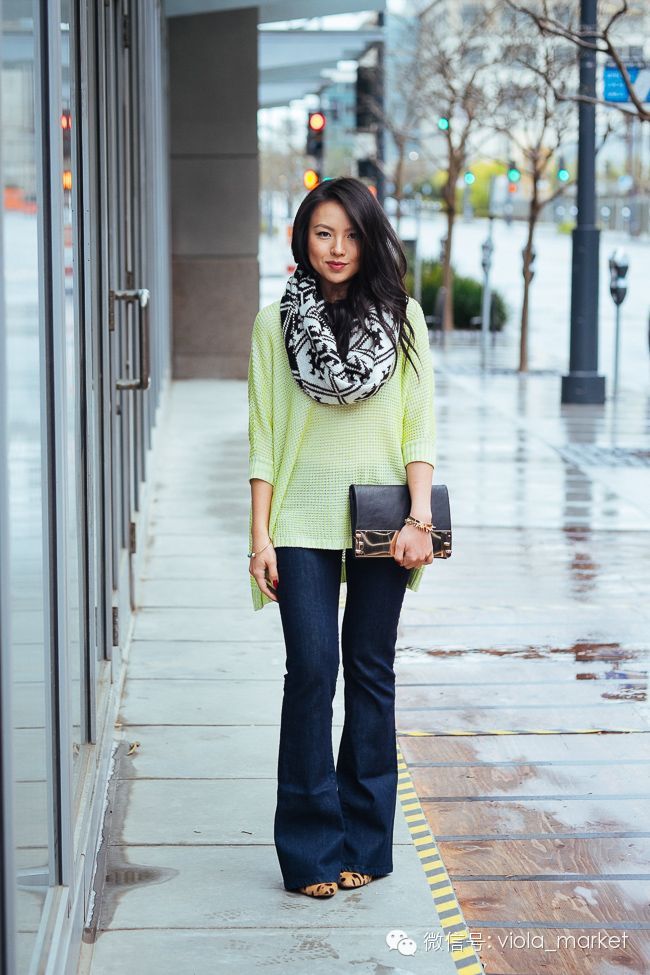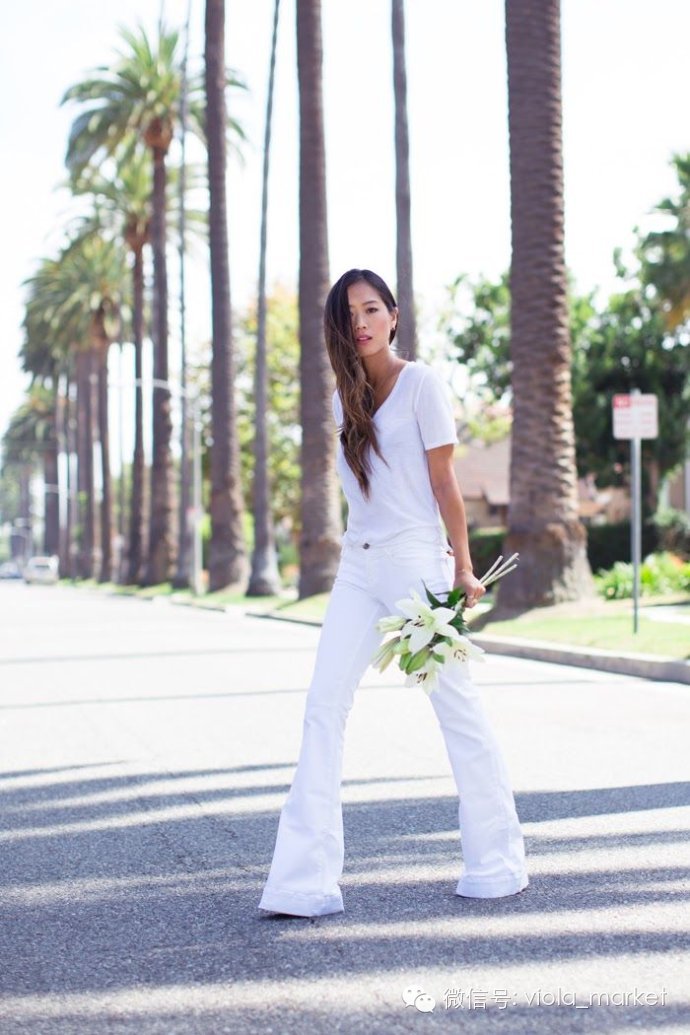 对于我们身形偏娇小的亚洲体型来说,唯一的遗憾可能是,穿喇叭裤可能意味着平底鞋的福利要结束了,取而必须代之以高跟鞋了。So what,尽管双脚辛苦了些,但你却可以收获一双无暇大长腿,也是不错的。