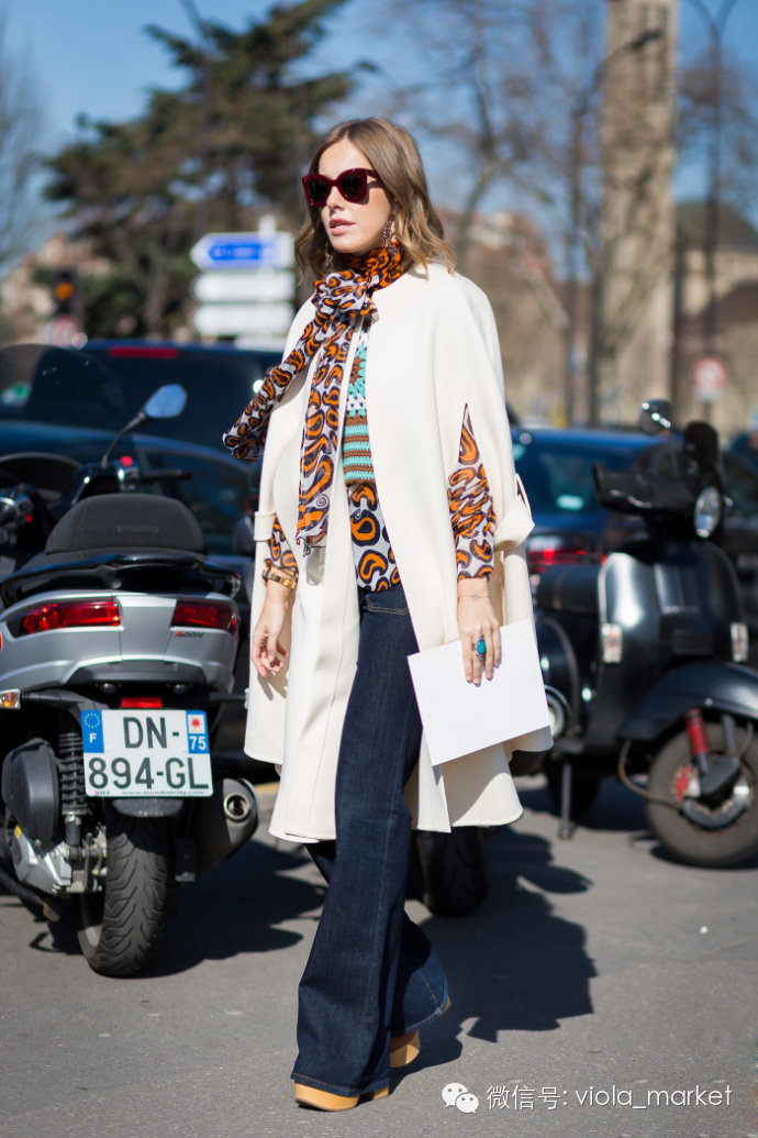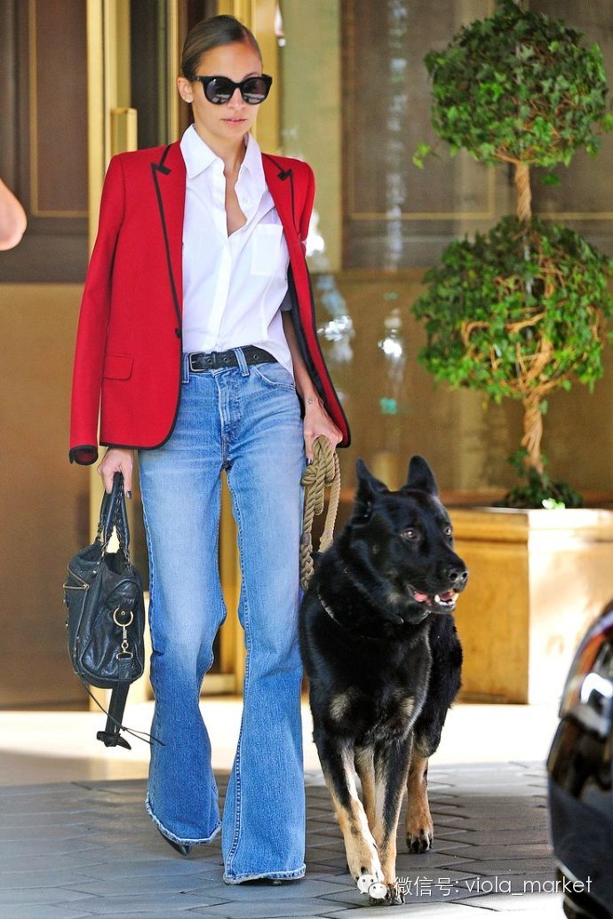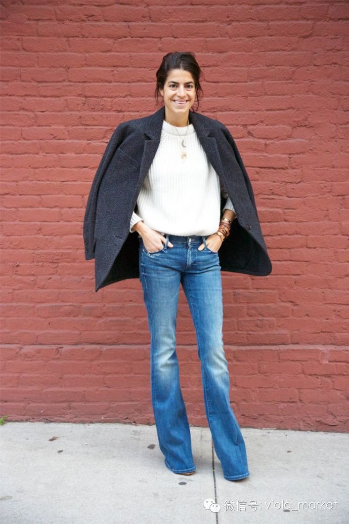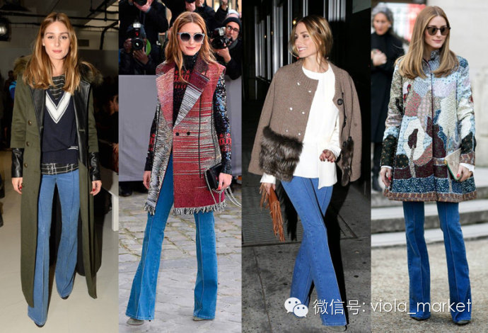 看看Olivia Palermo同一款喇叭裤如此高的出镜率,就算再不敏感的你大概也能嗅出这趋势的味道了。