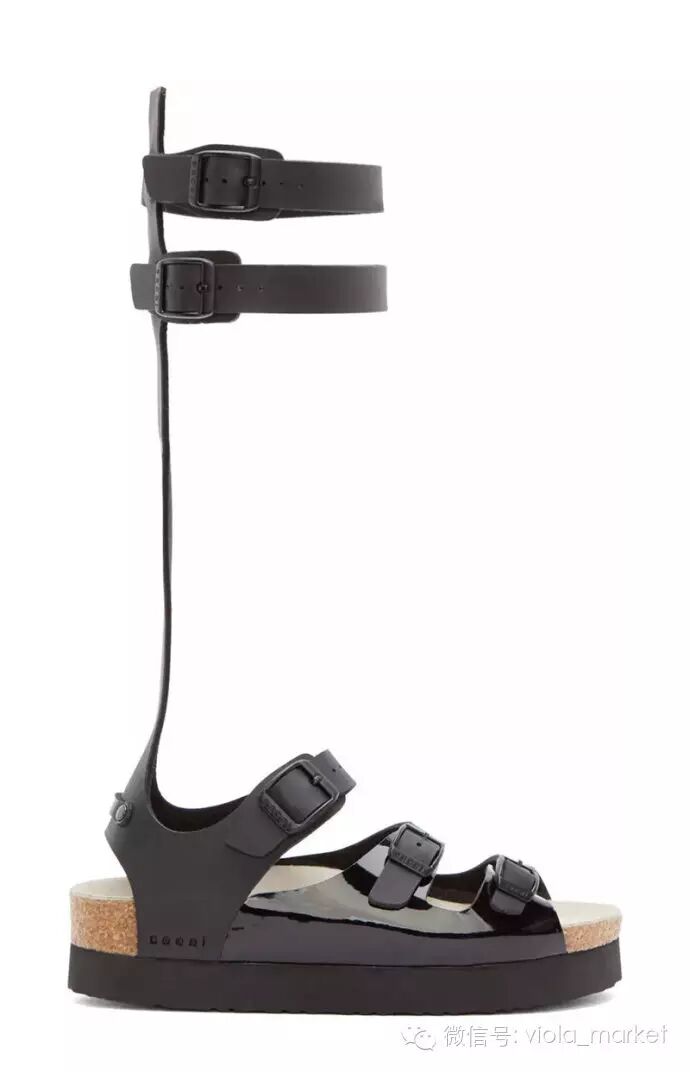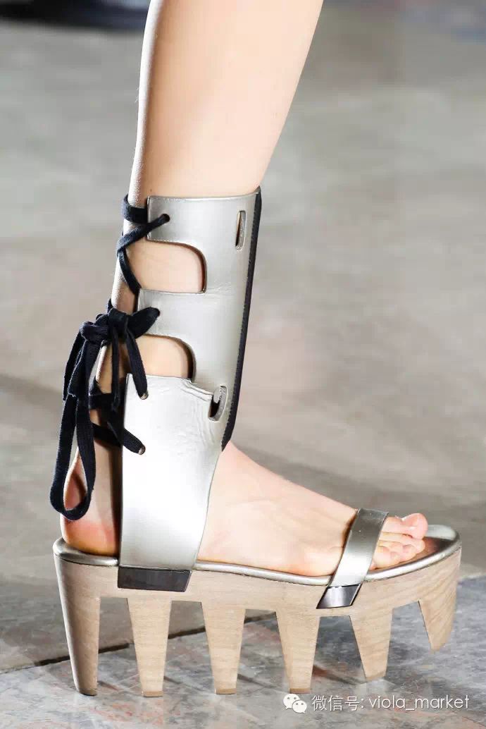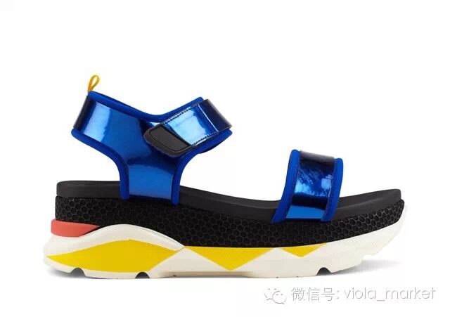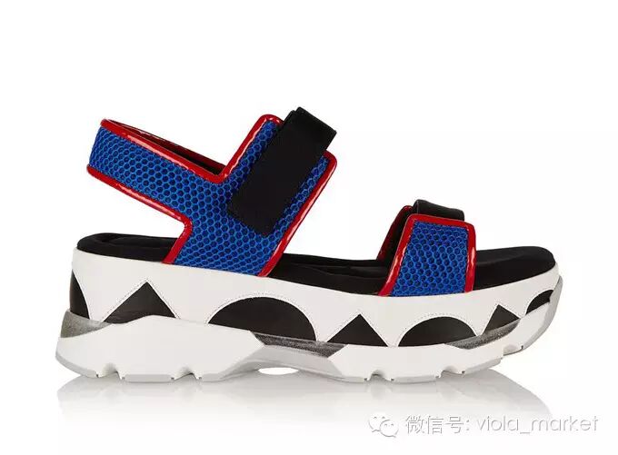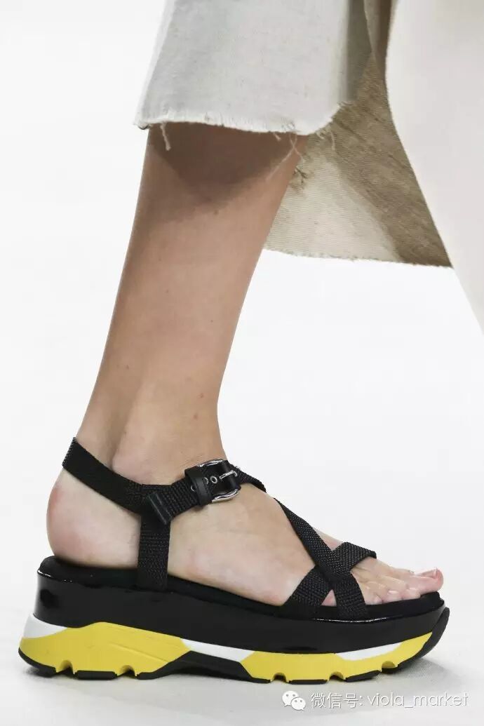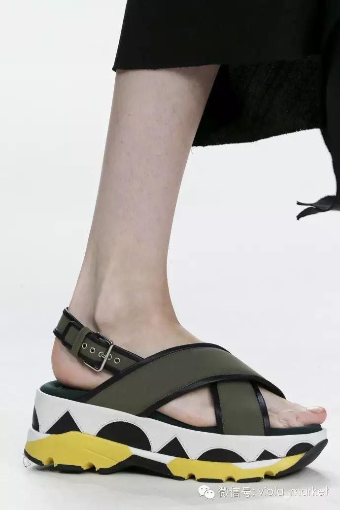 这股潮流的领袖当属Marni,它在2015春夏的秀场发布了大批有着简单搭扣带子和拖拉机般高耸鞋底的凉鞋。其中魔术贴搭扣是一大特色,首先考虑功能性,时尚的部分留待以后眼睛找机会调整,这才是它们的主旨,无关优雅,无关漂亮,只为方便走路。