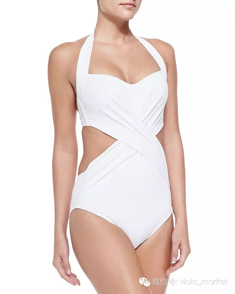 Monokini式连体泳衣(身体两侧挖空的设计),是塑造曲线的神器。