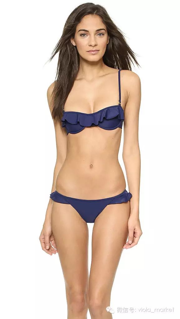 娇小的胸部也意味着,你可以大胆选择抹胸式的泳装上衣,当然如果太过平胸还是需要注意款式。最好有一定胸垫支撑,抹胸不要太过窄,有一些波浪边的装饰较宜,不然的话,原本应该是包在胸上的蝴蝶结,则很有可能最后变成一条缠在身上不知道什么鬼的布带子,