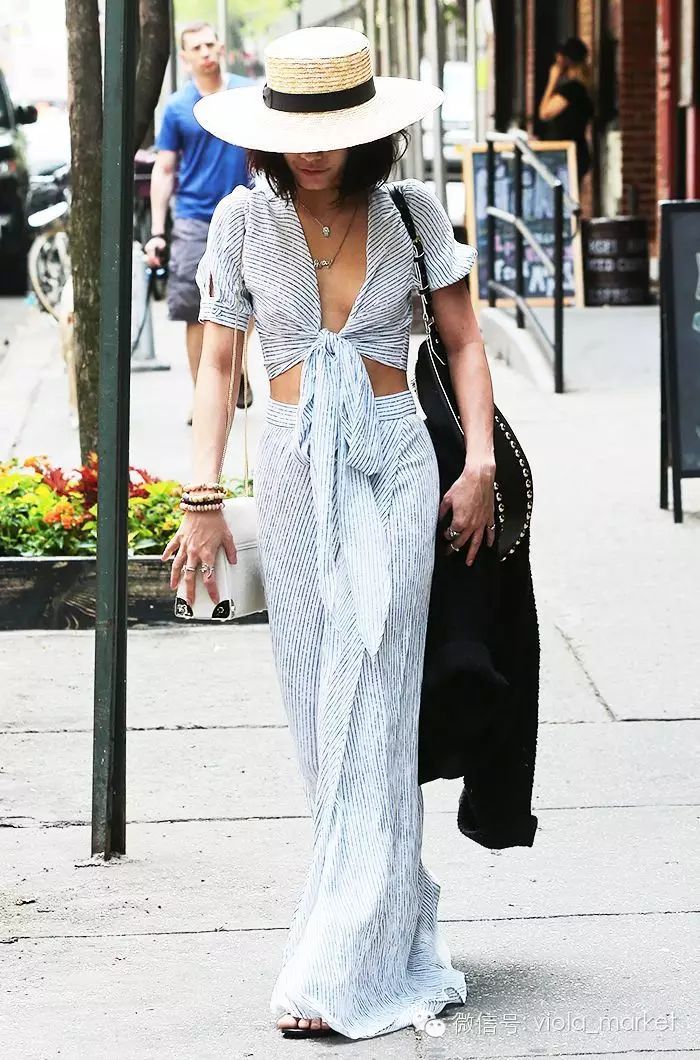 下面几张街拍照算是Vanessa最显高的一组照片了。如果不特别指出,你一定会觉得她本人有165以上,可见短版上衣的效用是多么的令人惊奇。除了长裙这种搭配同样还适合搭配阔脚裤。昨天我们也才说过Bratop,与短版上衣二者可谓夏季小个菇凉的显高利器。