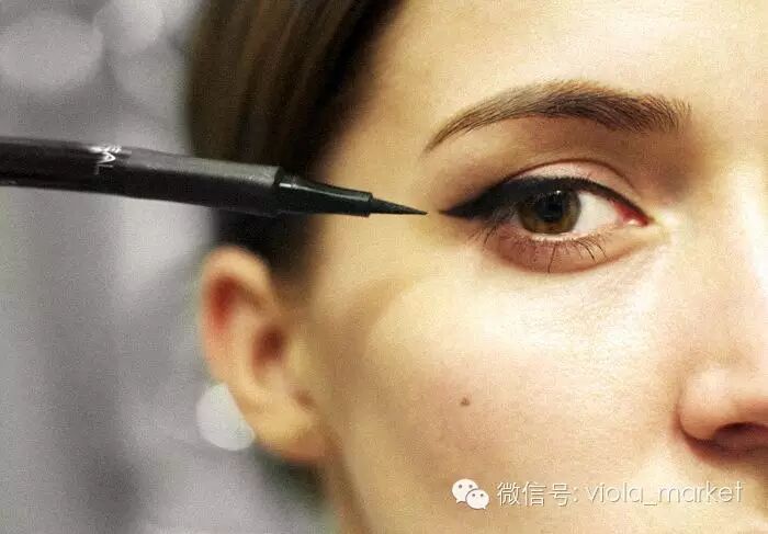 眉毛与眼头比较靠近,所以在眼线的画法上适合比较清晰的手法,眼头至眼中段只需微微的画出,眼尾加粗勾勒、拉长并向上扬,使眼型看起来平均、美丽。