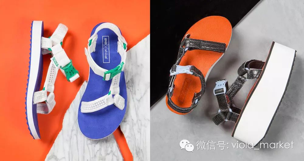 15春夏秀场从一线大牌Marni、Balenciaga 由于博肯鞋与厚底鞋的风靡,今年在丑鞋的潮流里又出现了一个新伙伴——运动凉鞋。之前微蓝有为大家介绍过,20 到快时尚品牌Topshop、Aldo等纷纷推出带有运动凉鞋设计元素的“丑凉鞋”。殊不知,这些所谓的运动凉鞋或称徒步凉鞋,它们共同的始祖TEVA鞋,也随着这股丑鞋潮,成为了时尚新宠儿。