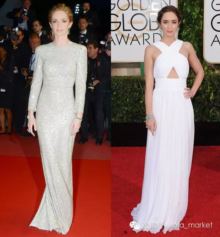 今年的奥斯卡以及金球奖上Emily Blunt都是女神形象出现。