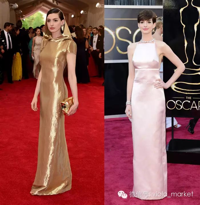 近年Anne Hathaway一直在走这种赫本式高贵极简的路线。今年Met Gala上的金色连帽长裙,以及13年奥斯卡上的分析露背裙都是备受好评。