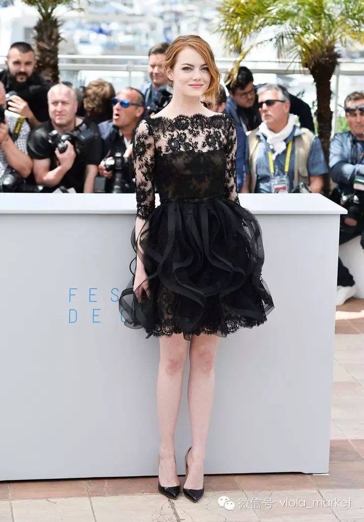 多数女性会穿长裙参加戛纳电影节,而Petra又让Emma再一次逆转,选择轻盈俏皮的蕾丝小礼服裙,再一次把Emma Stone的少女气息突出无疑。