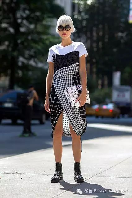 抹胸裙好看,但不好穿,内衣搭配比较麻烦,还老担心走光问题,直接搭件紧身打底T,裙子设计感越强,效果越出彩。