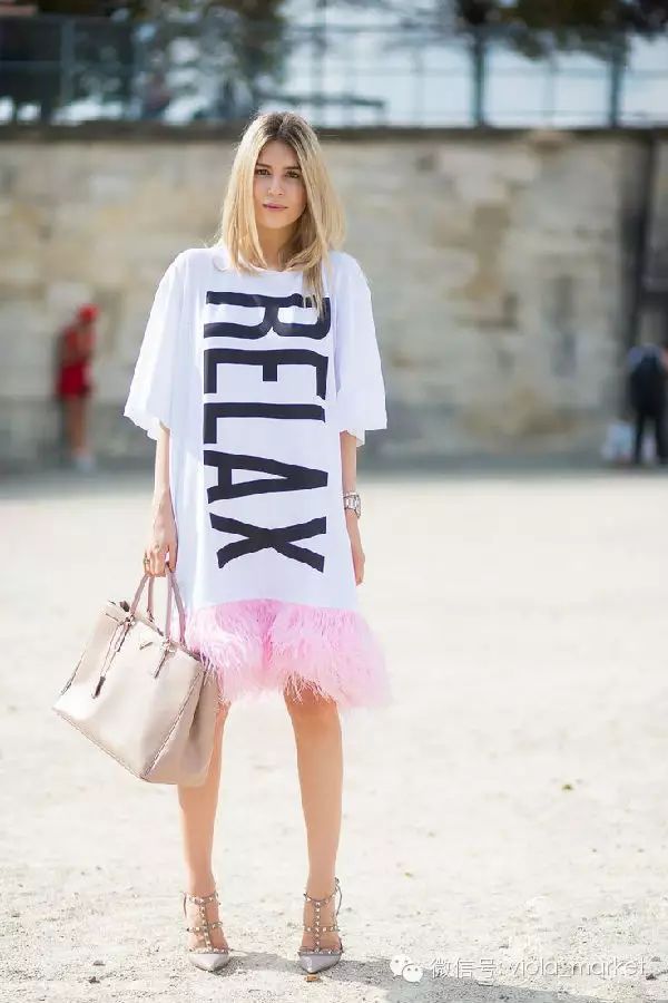 一件长T式连衣裙说来的确有些单调,并且休闲不够有品质感。裙里再搭一件华丽的短裙,例如有亮片或流苏设计的,瞬时参加高规格晚宴也是没问题的。