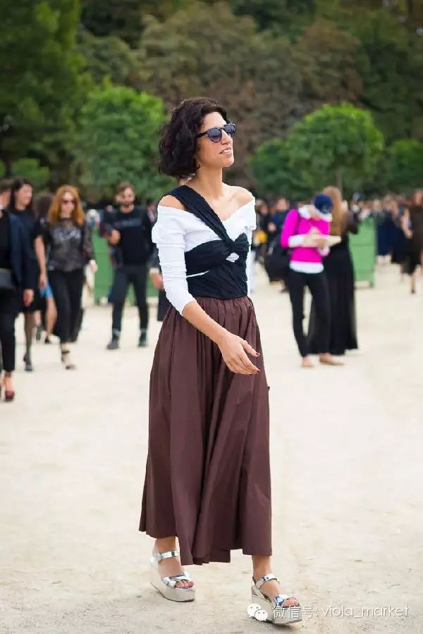 今年开叉信封裙也是特别流行的一类单品,并且今年的特点是正中开叉,时常给人走光的担心,配一条简单的超短裙或短裤在里边,既有特殊层次感,又不用担心走光,两全其美。