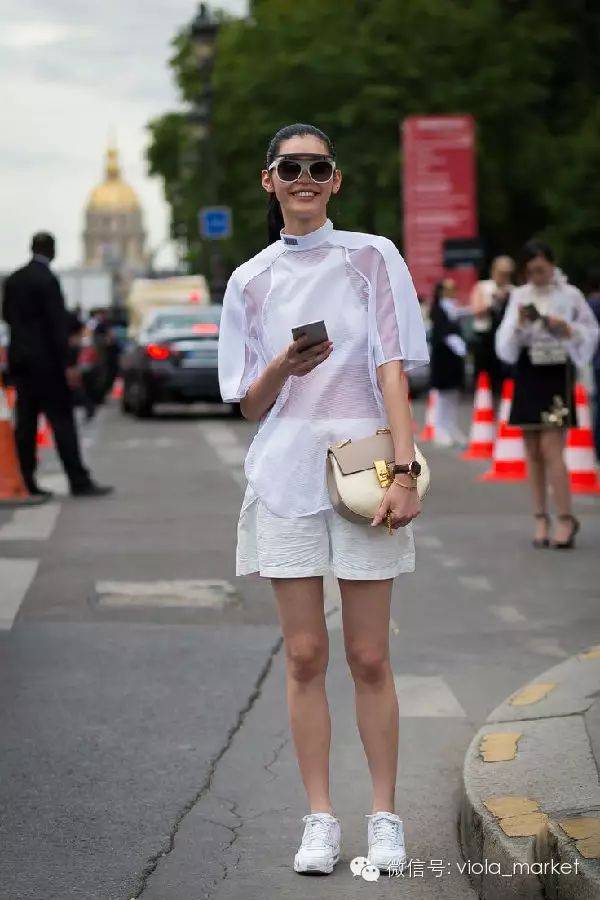 这一招很多人会说都知道,不过今夏与往年不同的地方是,仅仅掖起前幅衬衫的半边。下身短裤也好,小A裙也好,衬衫的一角仍然随风飘起,随意又不失清凉。