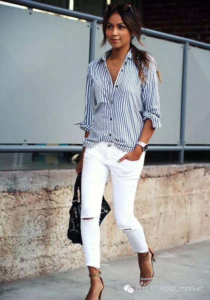 条纹就不多说了,永远百搭不出错。想怎么配都可以,扩加裤就短小一点,紧身裤就宽松一点,男朋友裤就配衬衫更精神,身材实在太好,就像金小妹这样那就紧身高腰 短版条纹背心,不要羡慕死周围人哦。