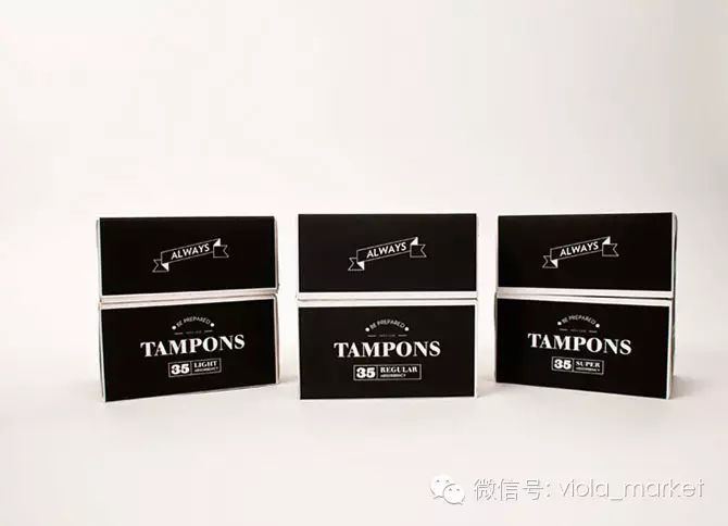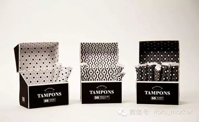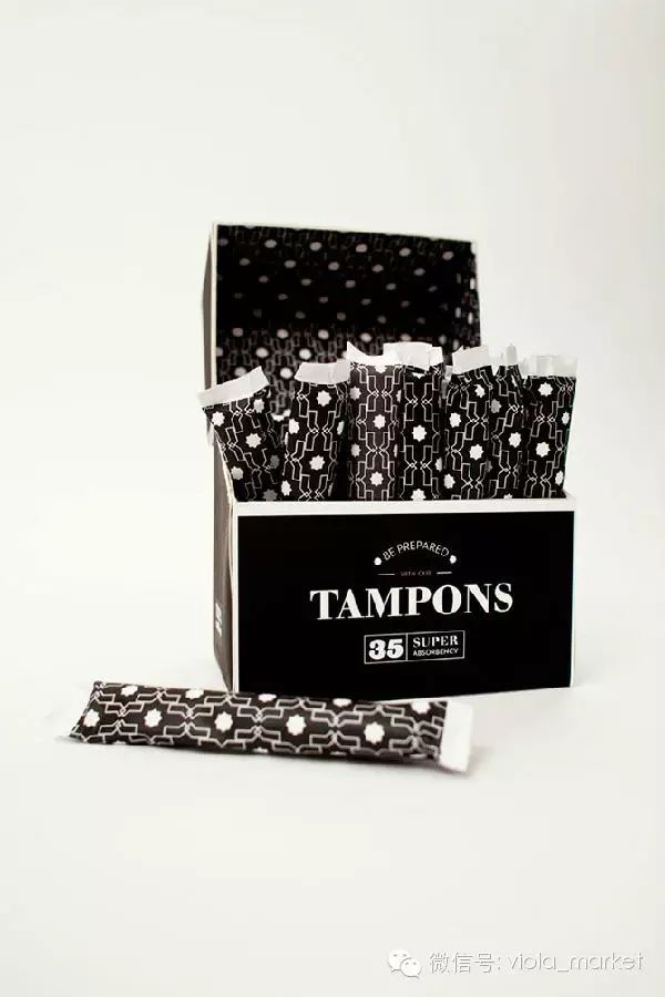 同样是由The Dieline Media学生所设计的Always卫生棉条以黑色为主题,包装没有多余的装饰,只有重点字眼,设计非常酷。另外外盒就像一个宝盒,打开后就会有以黑白色几何图案砌成的背景图及独立包装的卫生棉条,和外盒造型相唤应。