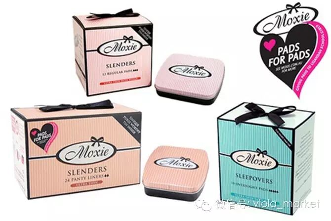 澳洲卫生巾品牌Moxie所推出的卫生巾和卫生绵条必定适合一众甜美系的女生,以Pastel Color粉彩色作为主色,再加上少女味浓的蝴蝶结,已经非常吸引,Moxie更把卫生用品的包装弄得跟礼物盒差不多,每次打开都像拆礼物一样,令人感到兴奋。