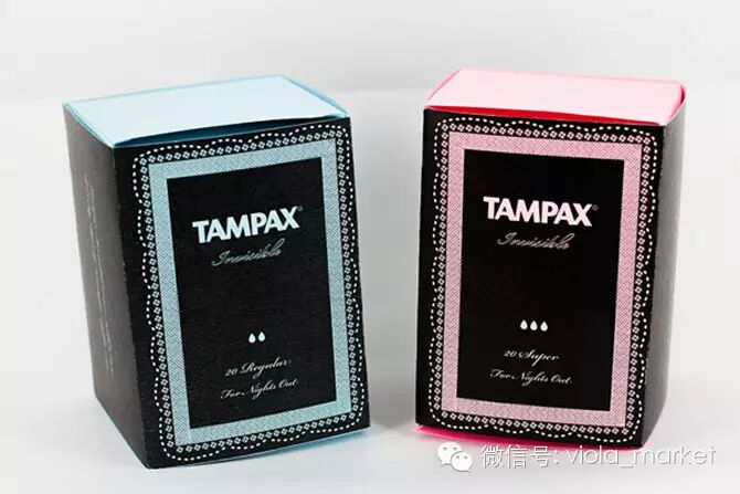 著名的卫生棉条品牌丹碧丝推出的Invisible系列产品,顾明思义是希望把卫生棉条包装得不像卫生棉条,让它在你的手袋里变得隐形。设计以黑色撞娇艳的粉红或粉蓝色,形成一种复古感,另外在加上蕾丝边去突显女性味,就连每条卫生棉条亦有蕾丝元素,放在化妆袋内绝对可以和化妆品融合在一起。