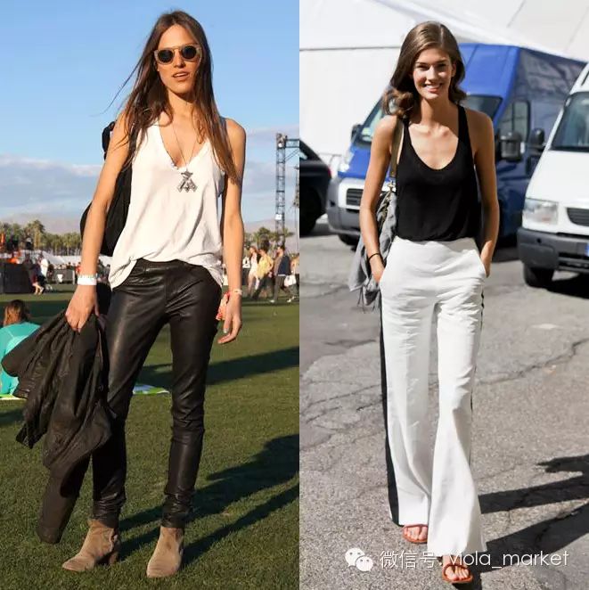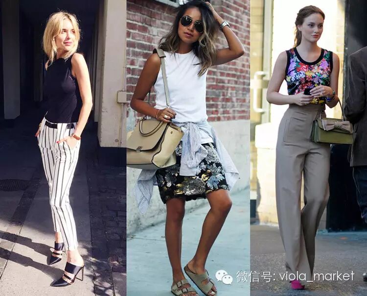 今年的特色是绕颈的吊带,松身的A形,到腰间的长度,搭配短裤和阔脚裤很不错。虽说大部分背心都比较汉子,但吊带款却是背心中十分女性化的一类,因此很多软妹子都很喜欢。