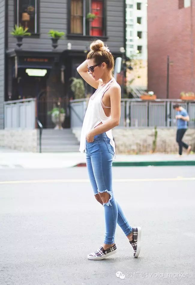 除了紧身牛仔裤,今年特别流行的破洞款和老妈款以及背带款,与背心那是百搭不爽的。比T恤和衬衫,清凉感那是绝对的。