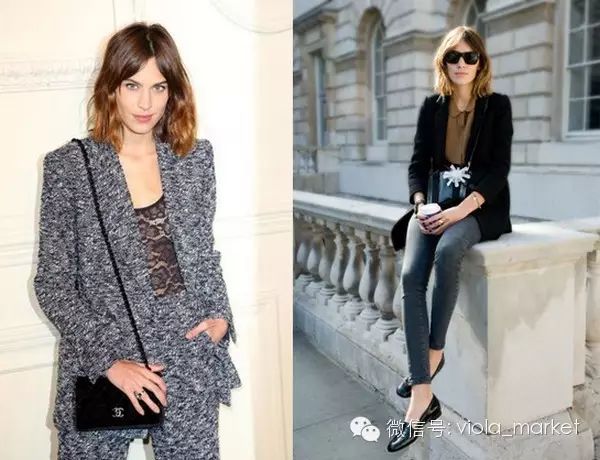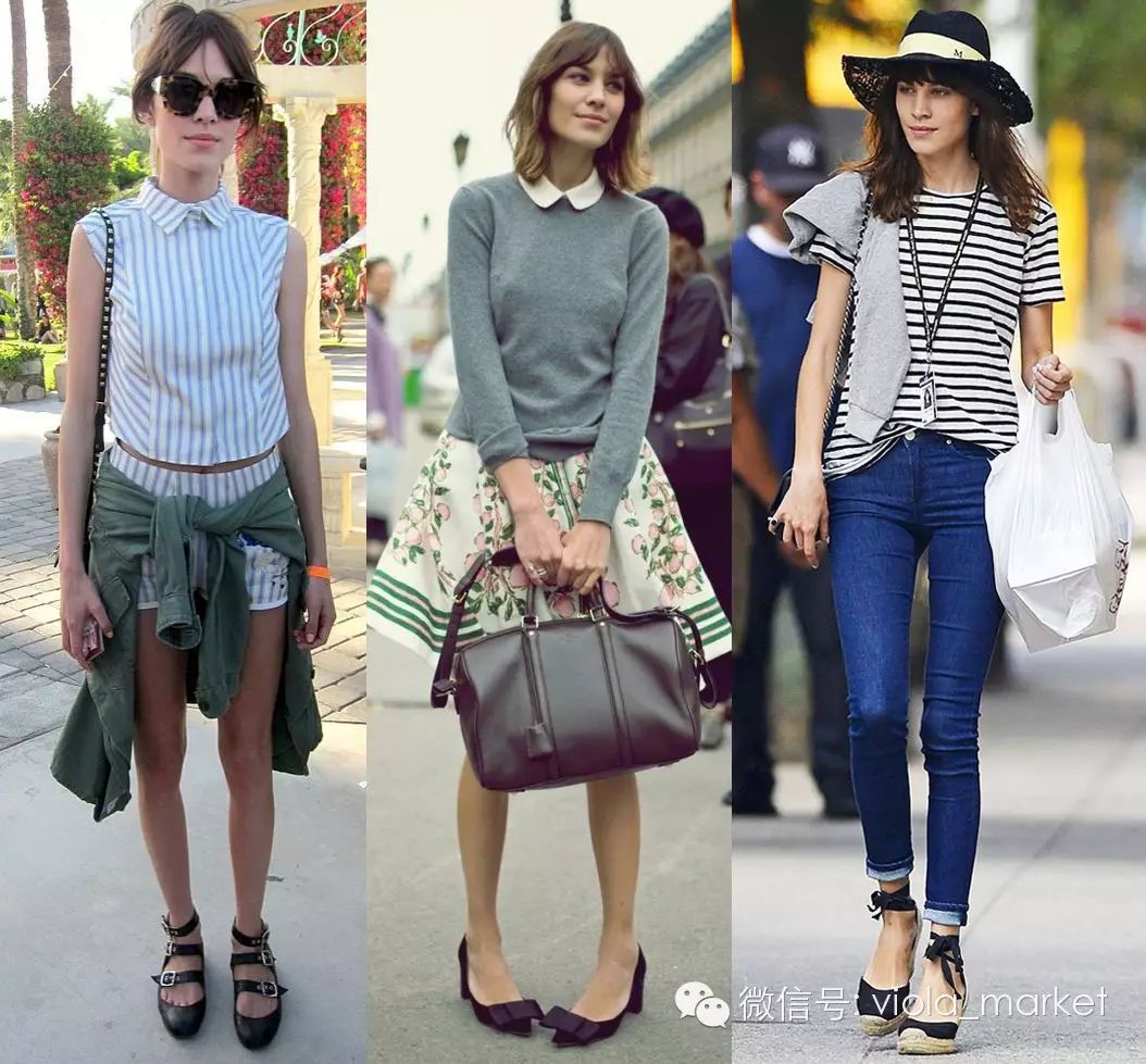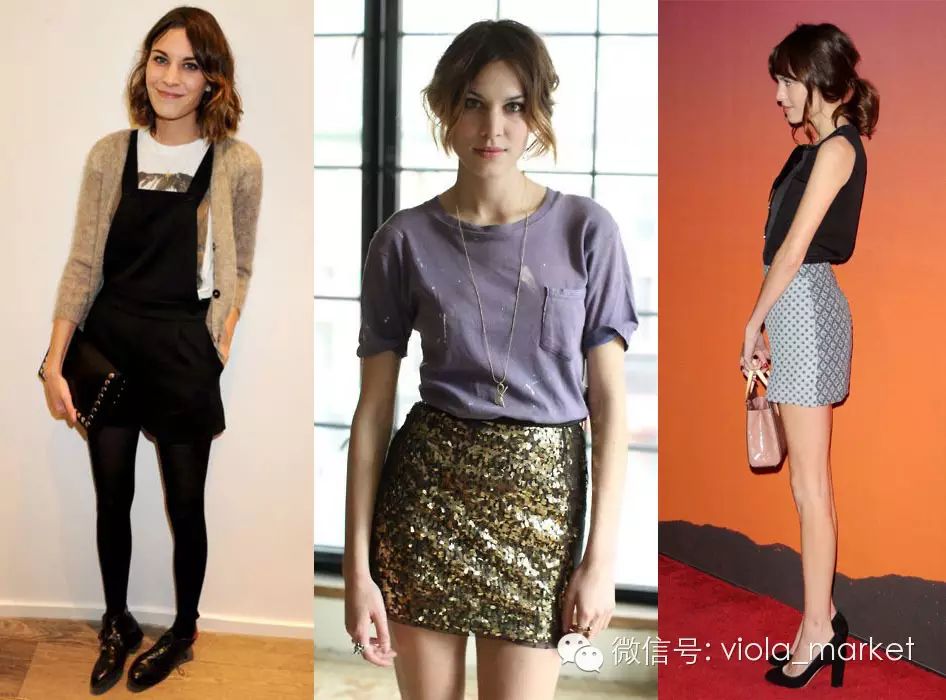 常出席时尚活动的Alexa Chung是许多女孩们的IT girls,中长发造型搭配中分浏海或是齐浏海,向来是Alexa Chung的招牌look,穿搭独树一格的她,总是能抓住最新的潮流,将每一季单品搭配成属于她自己的style。常用的单品:迷你裙、单宁元素与不同剪裁的衬衫。