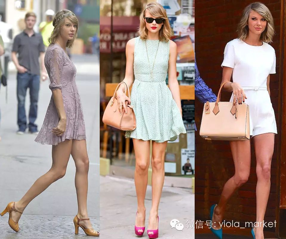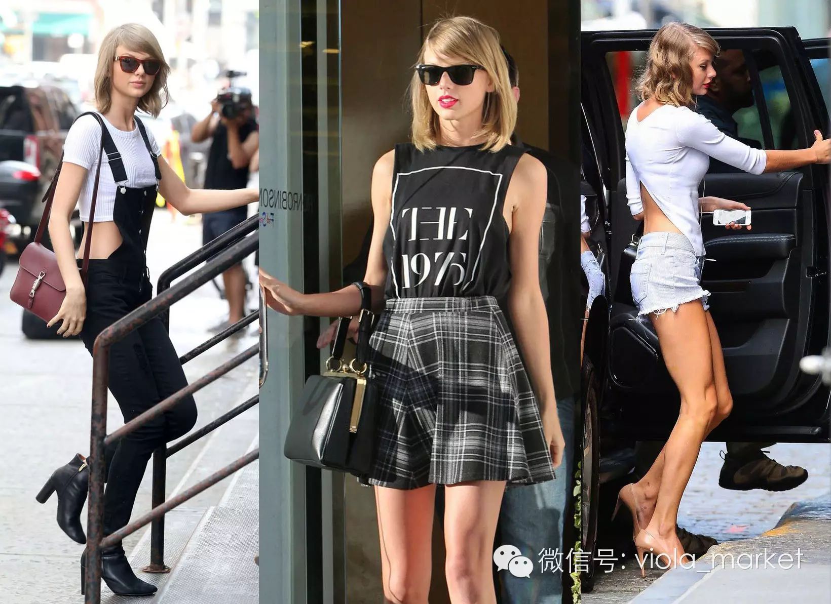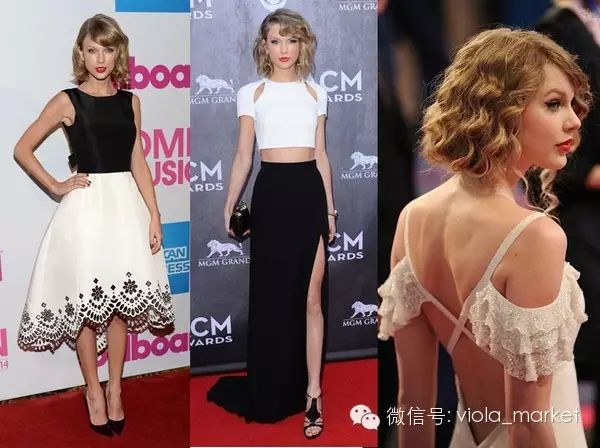 国民小天后Taylor Swift泰勒自去年在专辑<1989>中以短发新造型亮相后,时尚感大大提升,造型风格也更百变,不再只是乡村或浪漫,更具叛逆性格。招牌的美人鱼波浪与红唇,Taylor Swift 的中长发造型富有40年代的复古风格。私服穿搭总是少不了鲜艳色彩,最常穿的单品有:croptop短上衣、A-line裙以及手提复古包款。