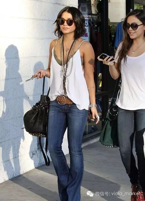 Vanessa Hudgens的这件军绿色蕾丝Bra与松身吊带背心的穿搭,内衣俨然成为了外衣。