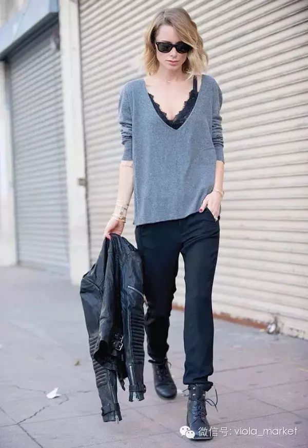 除了上面常见的两种露法,又不想给人过分暴露的低俗印象,时尚博主都爱将蕾丝内衣藏在