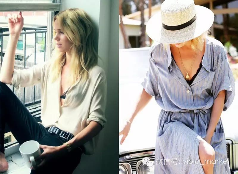 法式的优雅,就是不将衬衫扣子扣满,留下胸前两三粒纽扣自然敞开,让Bra自然不自然,若隐若现的显露。