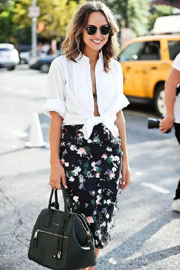 如果大家都在拼命解开衬衫领口的扣子,你不妨反其道而行之,把上面扣严,把下面解开。似乎露的更安全,却也更大胆,不过前提得把小腹修炼一下。