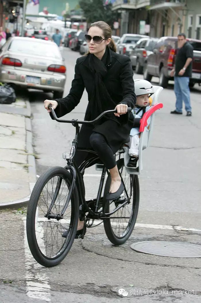 小时候或许你的妈妈也这样骑车带过你,但女神Angelina Jolie这样带孩子你肯定没见过。看样貌应该就是和Pitt的女儿Shiloh Jolie-Pitt。
