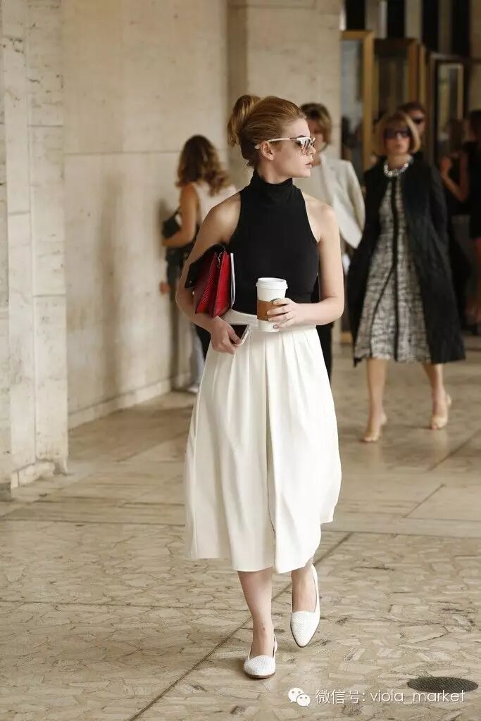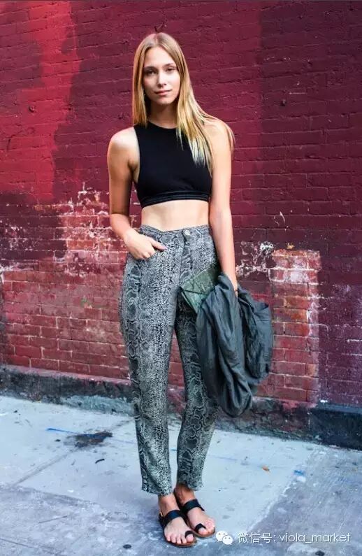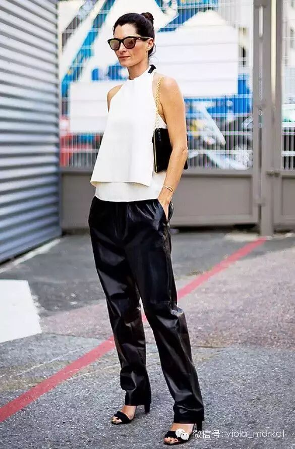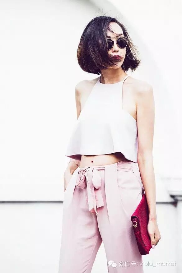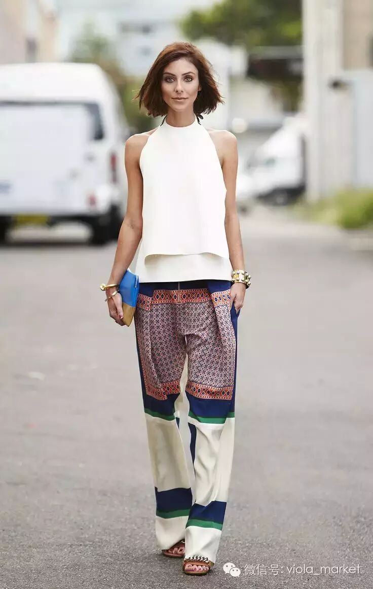 阔脚裤今夏很流行,削肩短上衣搭配阔脚裤算得上是今夏特色了。塑造完美的修长线条和上下身比例,绝对的气质型“肩美人”。