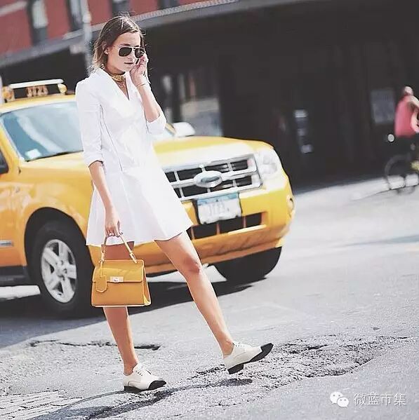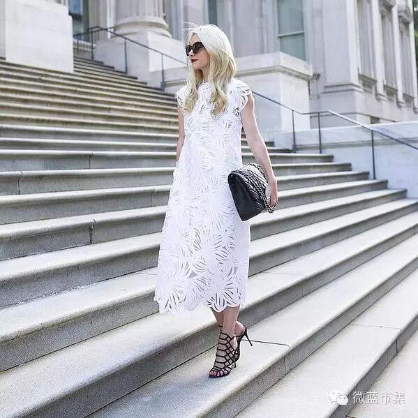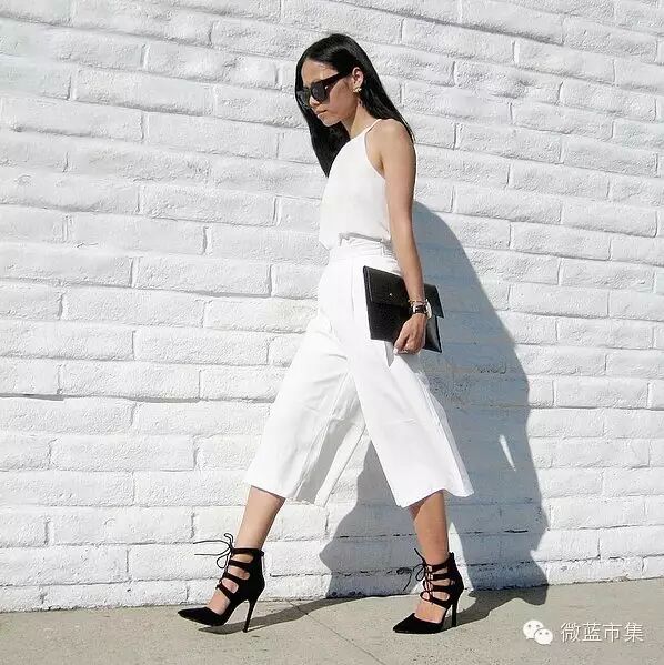 全白装,上下班都适合,最不用动脑的搭配方法就是搭配黑鞋黑包,以及天然黑发,如果一双绑带鞋就更具时尚感了。