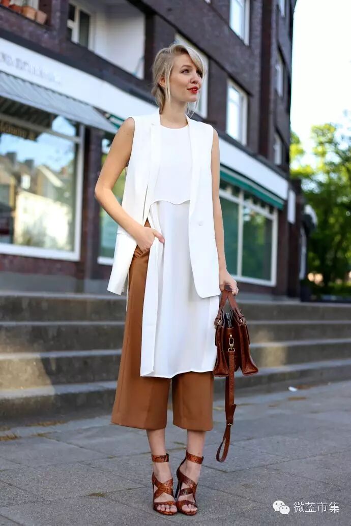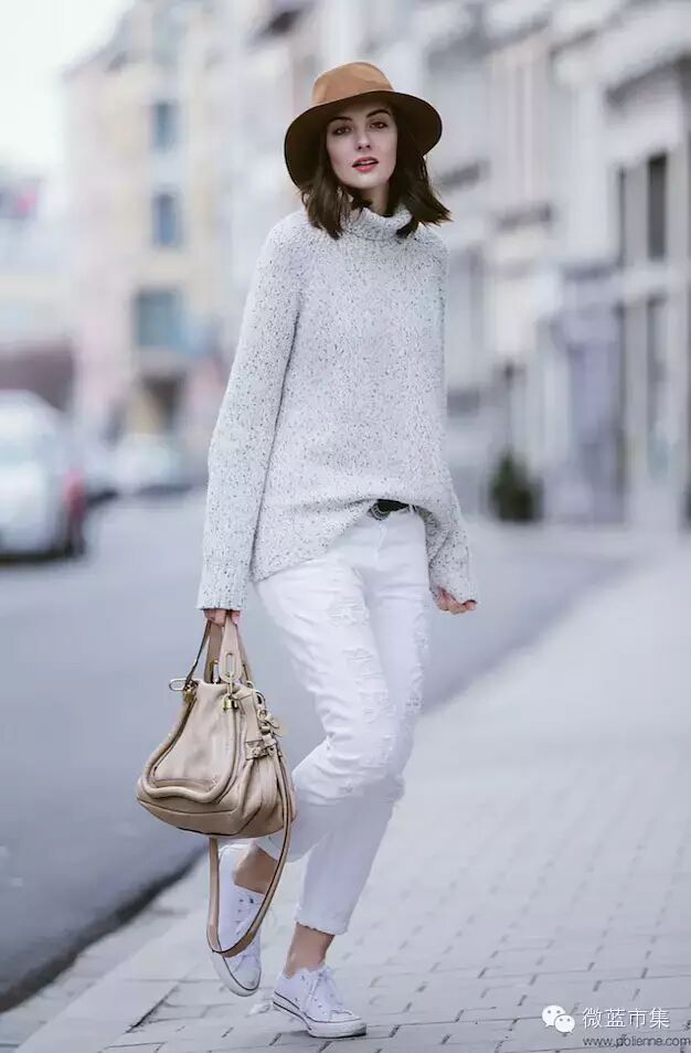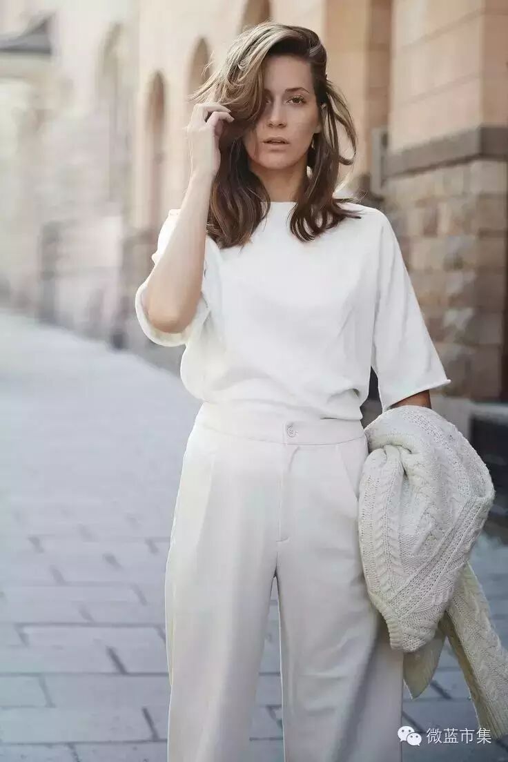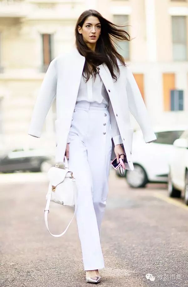 夏季全白穿搭,显得特别清爽纯净,秋冬仍然可以继续,白色大衣,或毛衫则更增加纯净和高冷气质感。如果担心太白缺少质感的话,可以选择配饰稍稍撞色。比如黑色或金属色的鞋子,驼色的宽边帽,有着金属装饰的手袋和挎包。