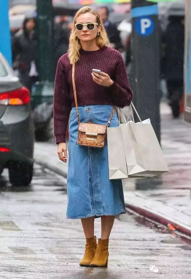 说好的牛仔裙,怎么能这么早收起来呢,当然要在秋天继续呀。合着T恤与衬衫陪你度过一个夏天的前扣式牛仔裙,只需上衣换成毛衫即可完美过渡,当然还不能忘了粗跟的复古短靴哦。