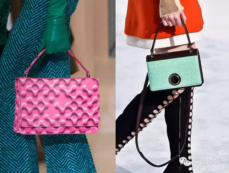 水桶包、双肩包、虽依然强劲,但这个秋冬另一股势力,优雅女人派的精致手提袋将会占领统治地位,就像在Prada以及Giambattista Valli15秋冬秀场上看到的那样。