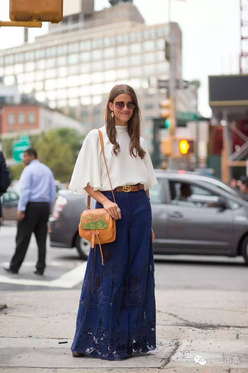 不过眼睛过把瘾之后,你知道这些街拍里边出现频率最高的单品是什么吗?你可能想不到,就在春天我们还在谈论着阔脚裤和Mom牛仔裤的时候,而秋天的现在,这股复古潮里已经演化出更多品种。直角裤、阔脚裤、喇叭裤、Mom牛仔裤、Boyfriend牛仔裤,还有最新出炉的Girlfriend牛仔裤(Skinny紧身牛仔裤似有淡出潮流圈的趋势)。任何在曾经的历史上流行过的廓型在这一季似乎都卷土重来了,我只好用复古牛仔来概况这股潮流单品了。