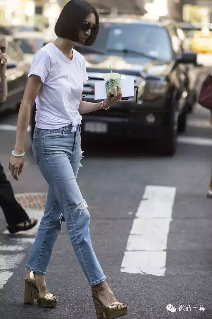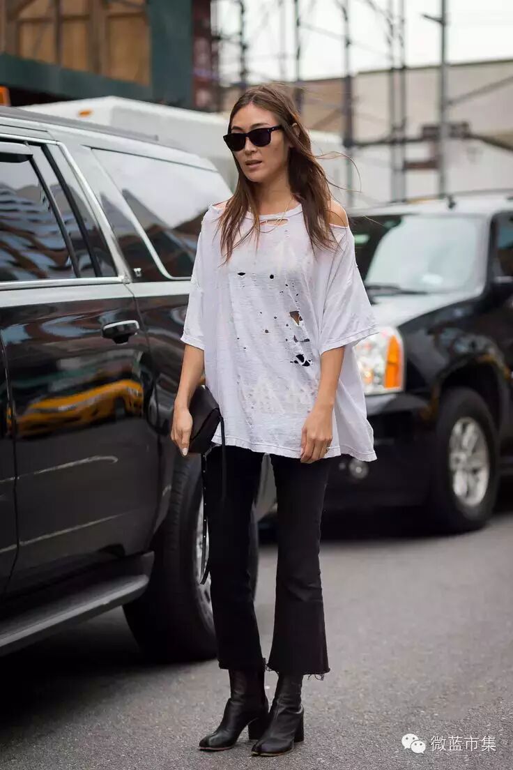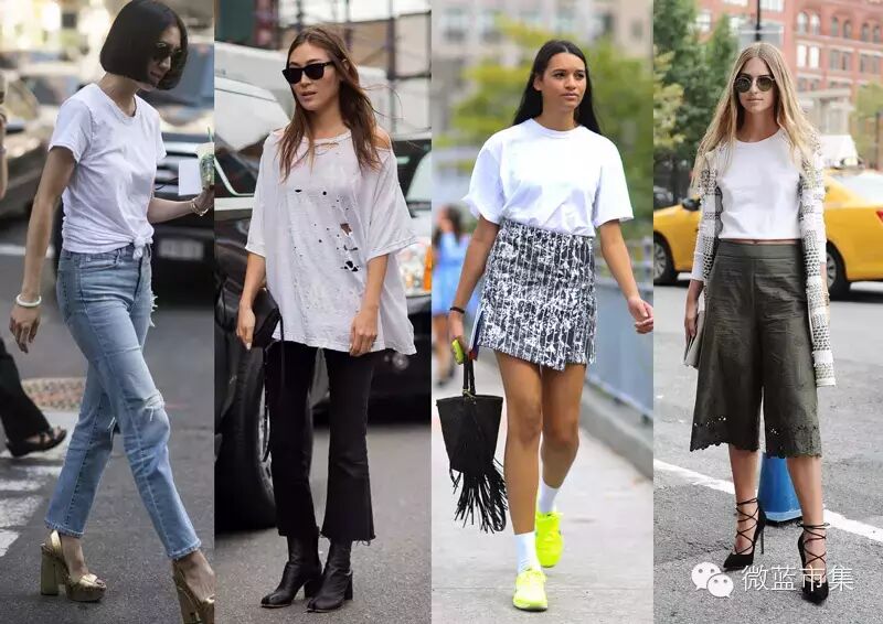 以刚结束的纽约时装周街拍大咔们为例,不同的牛仔裤、外套、裙装,也不管你风格是怀旧复古,细腻优雅,个性层次,还是酷酷的Rock风,显然都需要相应不同的T恤款式来配合。
