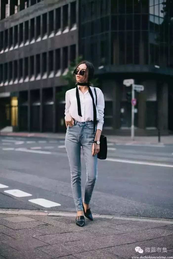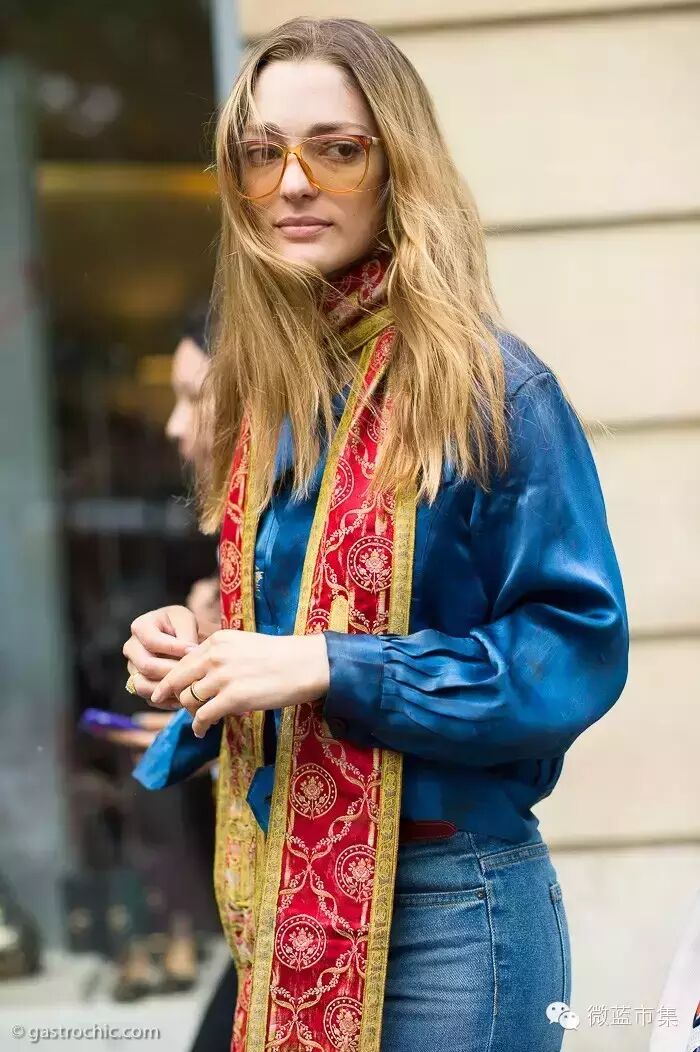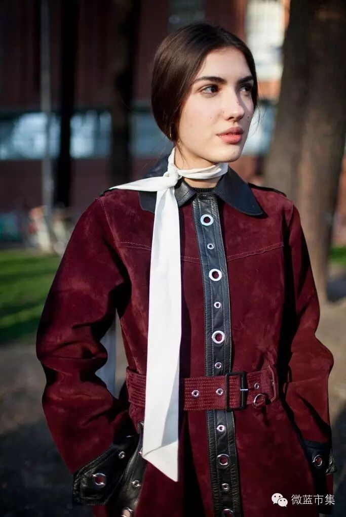 其实这两年,领口带丝带的衬衫已经很流行,在衬衫领下用条丝巾打上一个蝴蝶结便是它的升级版,且更加复古华丽。