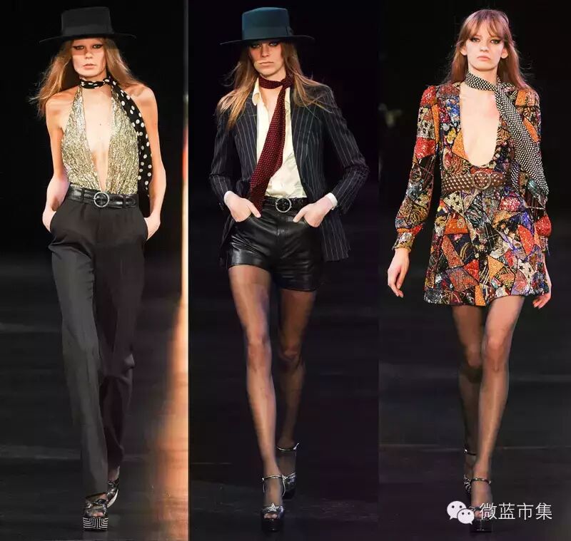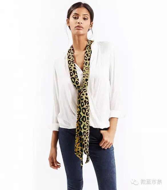 Saint Laurent在15秋冬的秀场发布上,可是把窄丝巾玩了个够,波点、豹纹、印花甚至荧光色,飘飘而至,不过系法就比较统一,都是把丝巾贴着脖颈一侧打结后,两端分别搭在胸前和背后。这样走起路来,就特别容易被行走的风所带起从而变的十分飘逸。