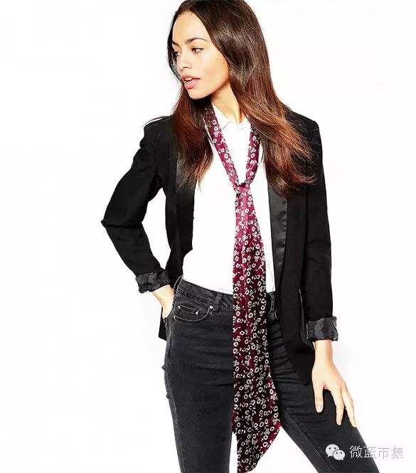 钟小姐,就是这种系法的最佳代言人,她所使用的这两只搭配,也是这种系法最适用的两只情境。一类就是搭配西服或各种休闲外套,另一类就是深V领口的衬衫或T恤。
