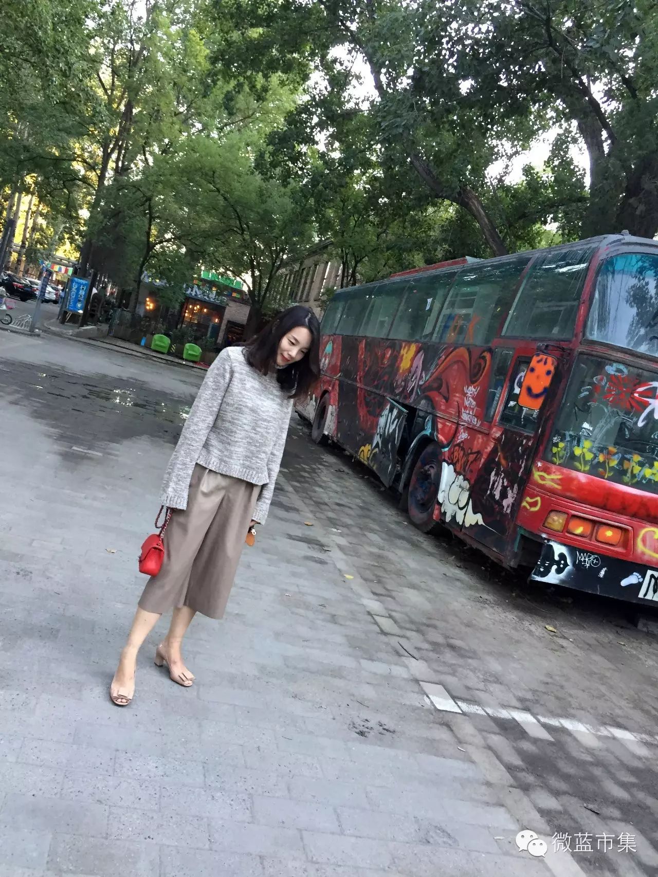 ↓爱日韩系的妹子可以搭休闲阔腿裤或者一步裙,重点是要么毛衣短露出腰线,要么塞一点毛衣到裙子里~