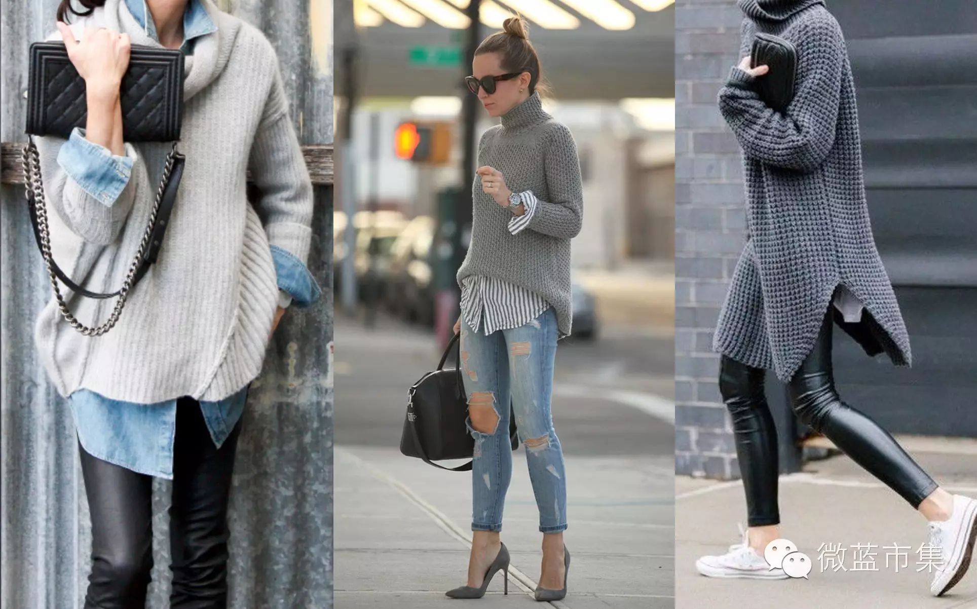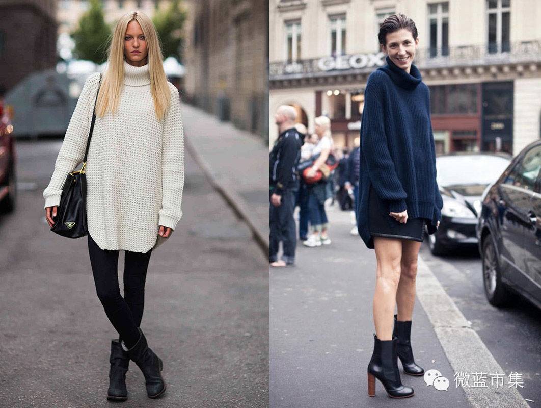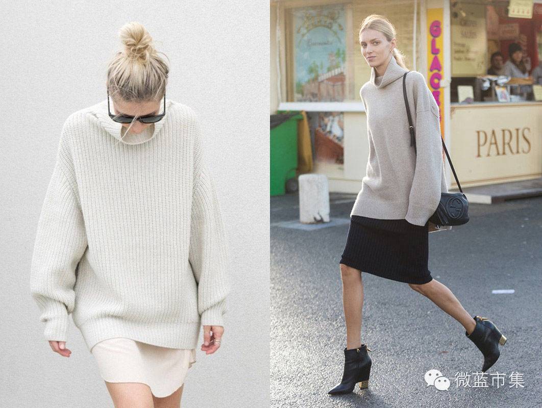 ↓如果选择长毛衣,宽松的高领毛衣作为针织裙来穿比较常见,但对本身气质的要求比较高,先看看正面教材:
