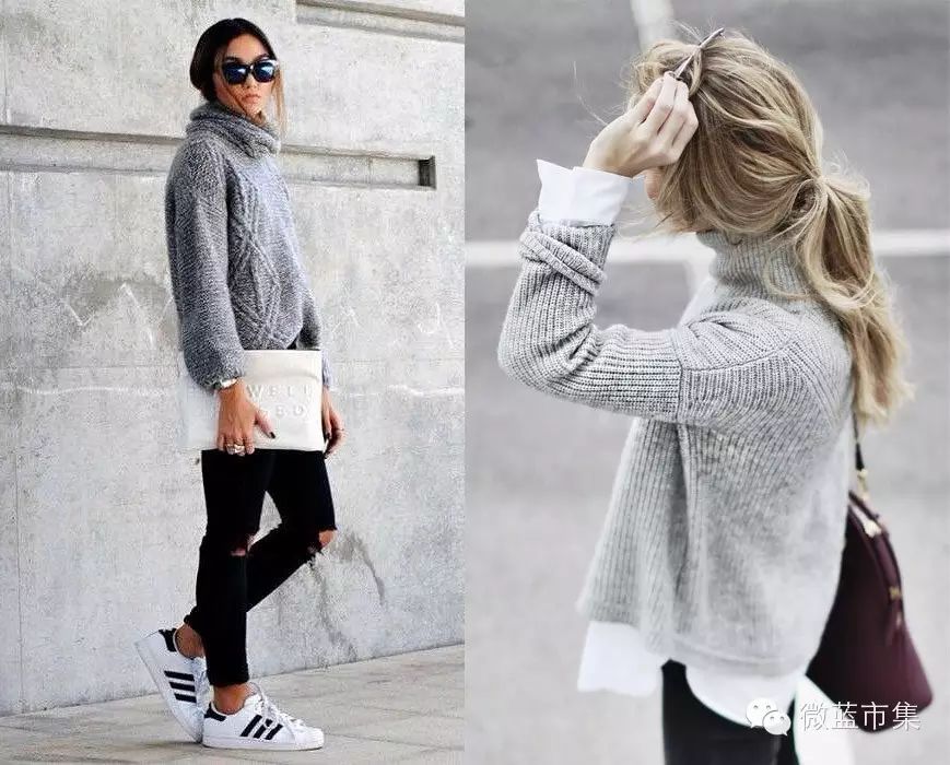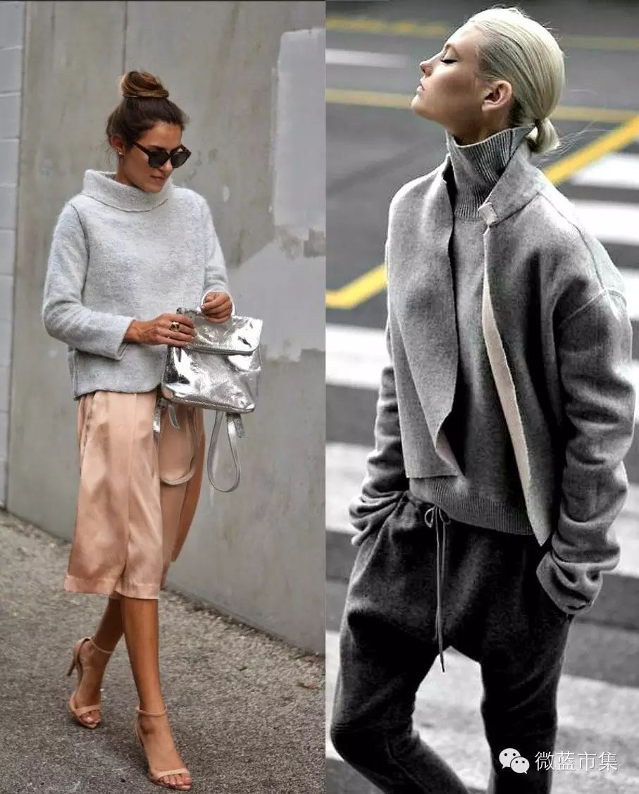 大多都是纵、横条,或者细格子编织的单色毛衣,通常会选择白、黑、灰、蓝等。绝大多数的毛衣不应该成为抢眼的目标,复古和搞怪风格的另说。