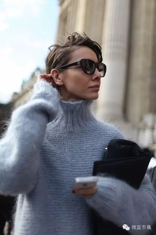 但 相对来说,毛衣也是最不容易穿出时尚感的单品。因为材质的关系,很难打造廓形;就编织和印花方面来说,只要不够出众,就容易显得孩子气;领子的高低、翻与不翻都很有讲究。