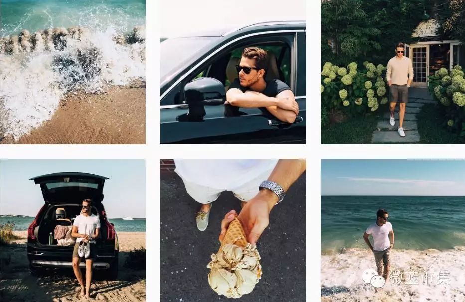 ↓现在的主页充斥着四处旅行的照片和自己的每一身装扮,多是充满活力的美式摩登穿搭,比如同色系的西装,或一身简单的纯色 T 恤配卡其色短裤、黑色长裤,加上帆布鞋就可以搞定日常的休闲装扮。
