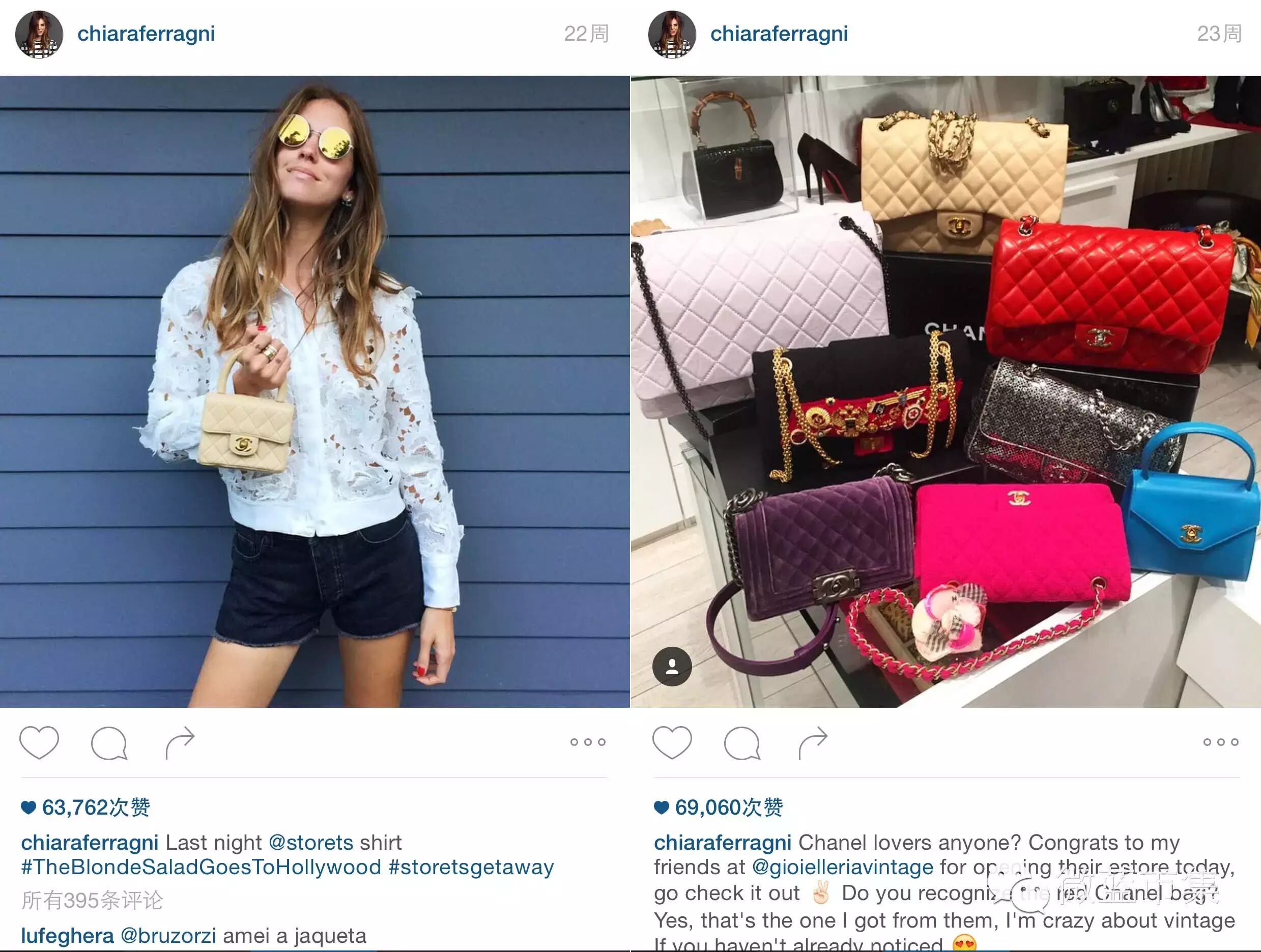 让我们看看宇宙第一博主Chara ferragni有多少个Vintage Chanel?以及INS上那5W+的点赞和评论~