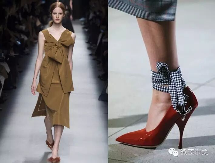 春夏的伸展台上,出现大量的蝴蝶结,不是那种可爱的粉红浪潮,反而是复古、优雅,仿佛维多利亚时代的风光,绒面的黑色细长蝴蝶结,细细点缀在女人的脖子或脚踝之间,夸张一点的设计,让大颗蝴蝶结把女人包装成甜美礼物,或是以量取胜,多个蝴蝶结成为服装上的立体装饰。