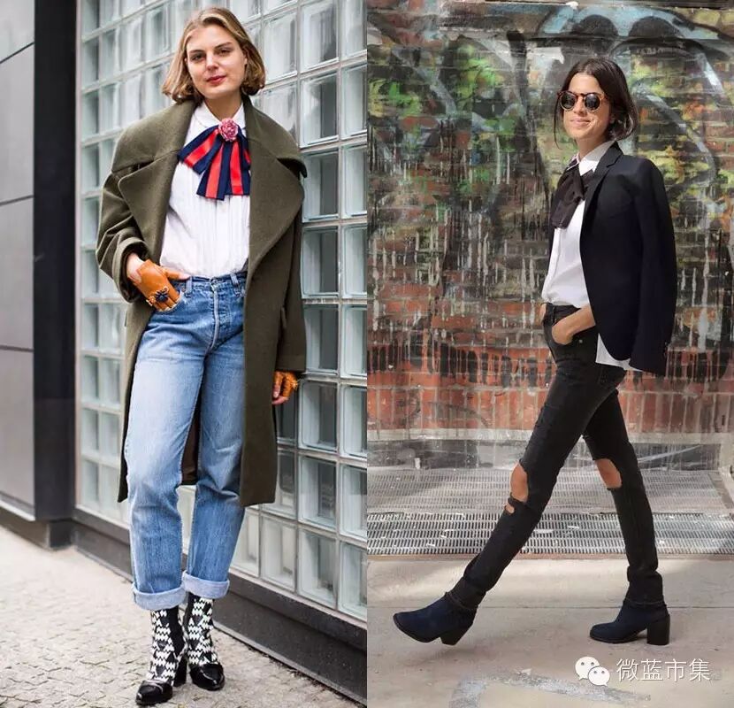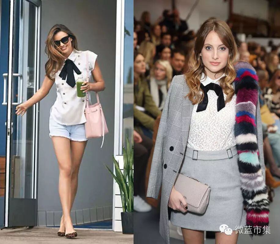 其实,蝴蝶结元素,最易操作的便是蝴蝶结衬衫或T恤衫,既能令你变得girlish,又令你的优雅度大大提升,如果配衬西装更能穿出一阵成熟韵味!南方的妹子这么穿就刚刚好,北方的妹子外加一件大衣即可,实在是很方便的单品哦!