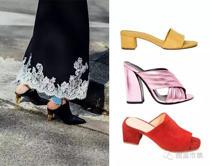 Mules,「懒人鞋」、「裸跟鞋」,在50、60年代风靡一时,现在又复古回来,露后跟有高跟或者平底,尖头或是圆头,鲜艳的颜色也非常流行,无论是配合上班的正装,还是度假的休闲搭配,都很好看!