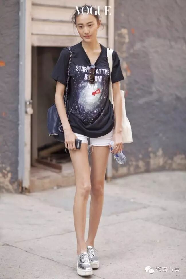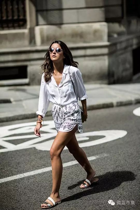 短裤,特别容易穿出长长短短的错落感,外搭内搭结合,多一点创意,就能有意想不到的效果。