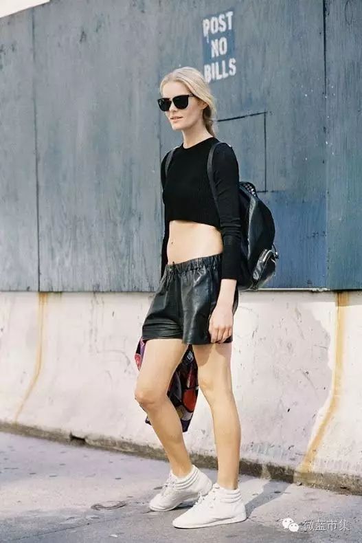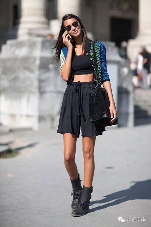 高腰短裤,露出腰线,营造腰线以下都是腿错觉