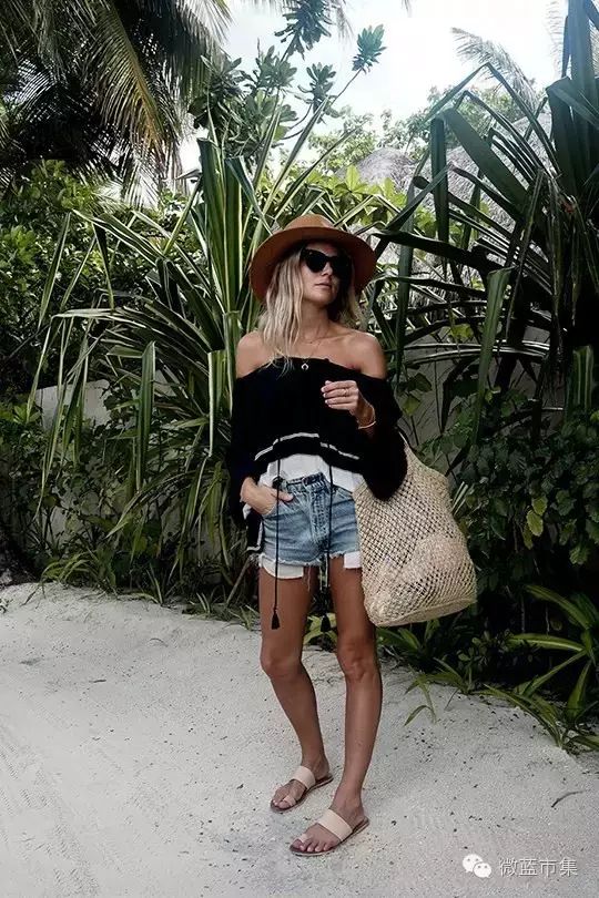 ↓短裤+宽松露肩装,名媛小姐尽显甜美度假风~